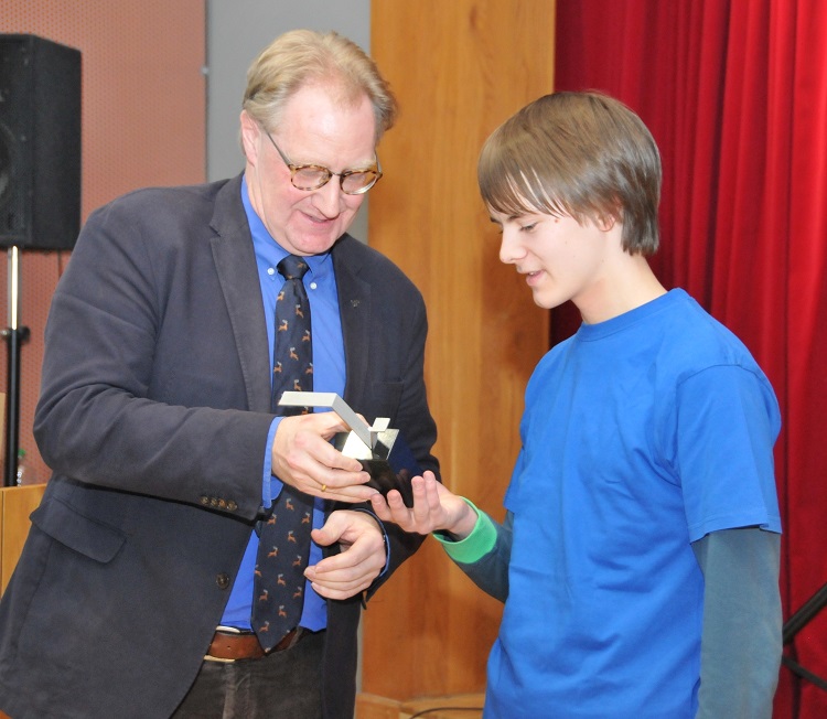 Das Gerhart- Hauptmann- Gymnasium stellte in diesem Jahr auch eine deutlich kleinere Delegation, aber die hatte es in sich. Johnnes Kändler aus Klasse 10 erkämpfte nicht nur einen ersten Preis, sondern er erhielt auch den Sonderpreis der Hochschule Wismar. Dekan Prof. Wiegand-Hoffmeister würdigte in einer Laudatio die Leistungen der jungen Mathematiker. „Wir brauchen im Land gut ausgebildete Ingenieure, deshalb müssen schon in der Schule Mathematik und Naturwissenschaften gefördert werden. Ihr werdet im Studium und im Beruf Erfolg haben, wenn euch die Sache Spaß macht.“ Mit 34 von 40 möglichen Punkten erhielt Johannes die höchste Punktzahl der Oberstufe und darf sich berechtigte Hoffnungen auf einen Startplatz in der Bundesrunde machen. „Wir dürfen in diesem Jahr elf Mathematiker im Frühjahr nach Bremerhafen entsenden, wir hatten in den vergangenen Jahren immer sehr gute Ergebnisse.“ erklärte Dr. Jagnow und wünschte den Jungen und Mädchen in der nächsten Runde viel Erfolg.