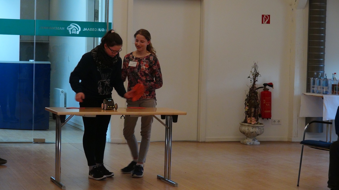So wurden Traumfahrzeuge entworfen und mit Techcards richtig gebaut. Am Ende des Erfindercamps fand dann ein Wettrennen statt, dass erstmalig vor Publikum durchgeführt wurde. Das schnellste und coolste Fahrzeug, das ins Ziel kommt, sollte gewinnen.